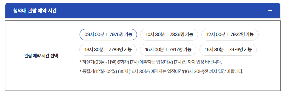 중요한 팁은 청와대 관람 예약은 선착순으로 진행합니다.